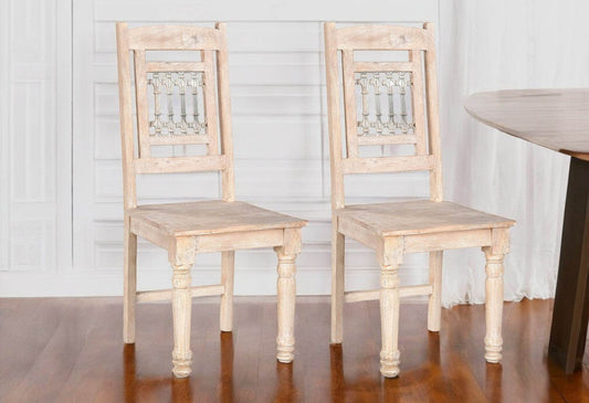 Set of Two White Wood Ladder Back Dining Side Chairs