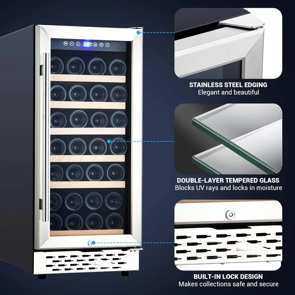 Experience unparalleled sophistication with the 15 Inch Wine Fridge, 28 Bottles—a must-have for discerning wine enthusiasts who value exclusivity and refined taste. This wine fridge is more than just a storage unit; it’s a statement piece designed to elevate any space with its sleek, compact profile and high-performance features.
