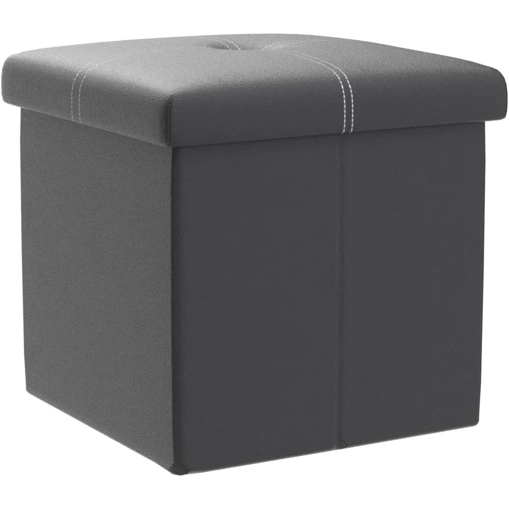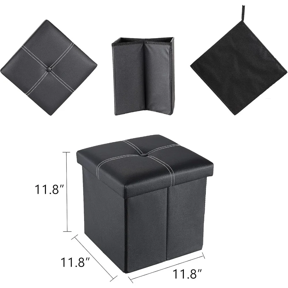 This product is a folding storage ottoman, measuring 11.8 inches in diameter and height, offering ample space for storing items such as shoes, blankets, and various other sundries. It comes as a set of two, making it ideal for small spaces and perfect for tidying up entryways and bedrooms. The ottoman is crafted from thick synthetic leather with fine stitching, ensuring both style and durability. Its foldable design allows for easy assembly and disassembly, providing a stable storage solution that can be quickly set up or folded flat for storage or transport. Additionally, the faux leather cushioned top is filled with high-quality sponge, ensuring a comfortable seating experience.