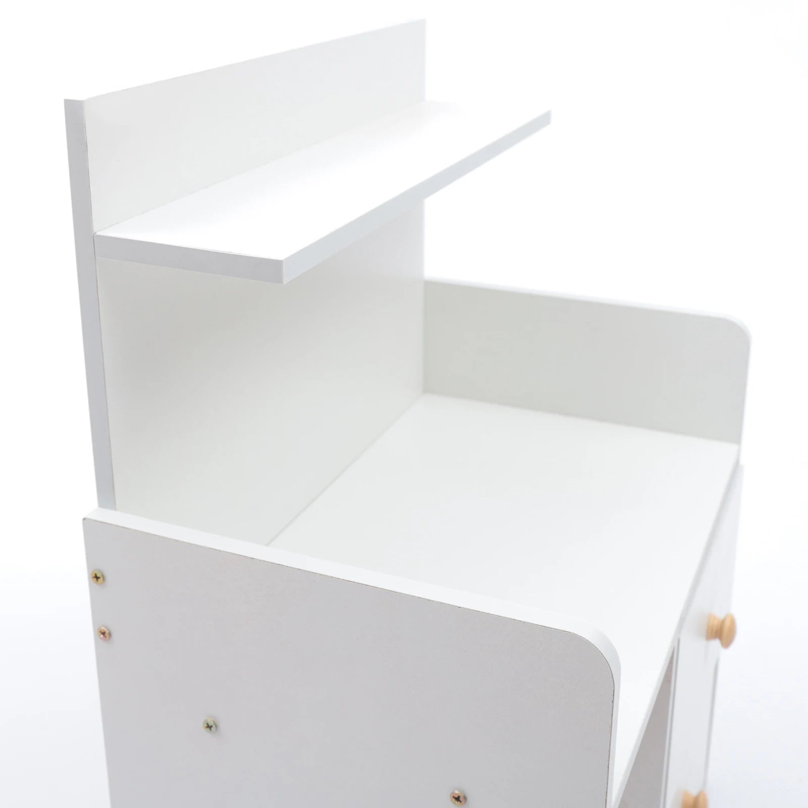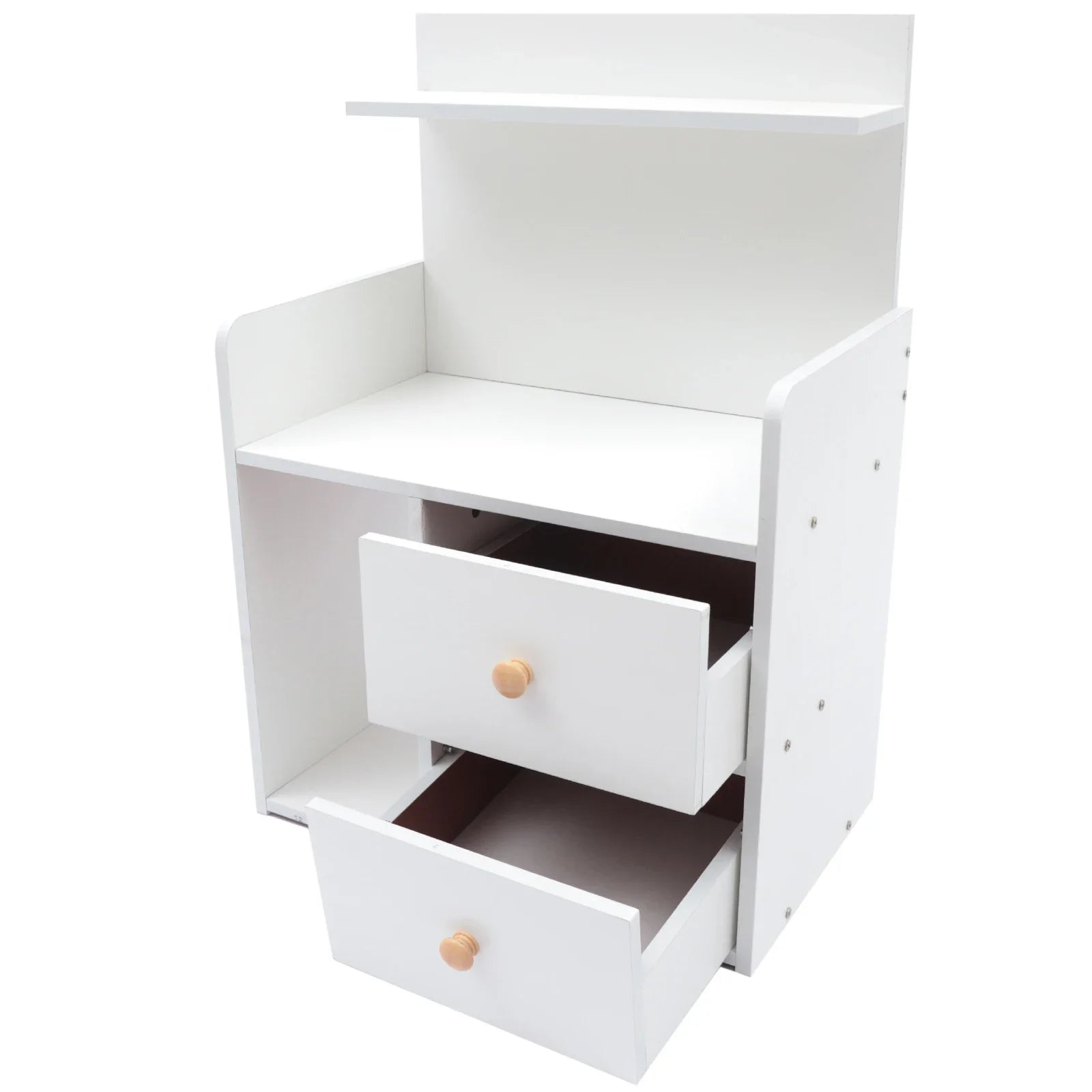 Solid Handles: The solid round wood handles not only add aesthetics but also facilitate pulling drawers.