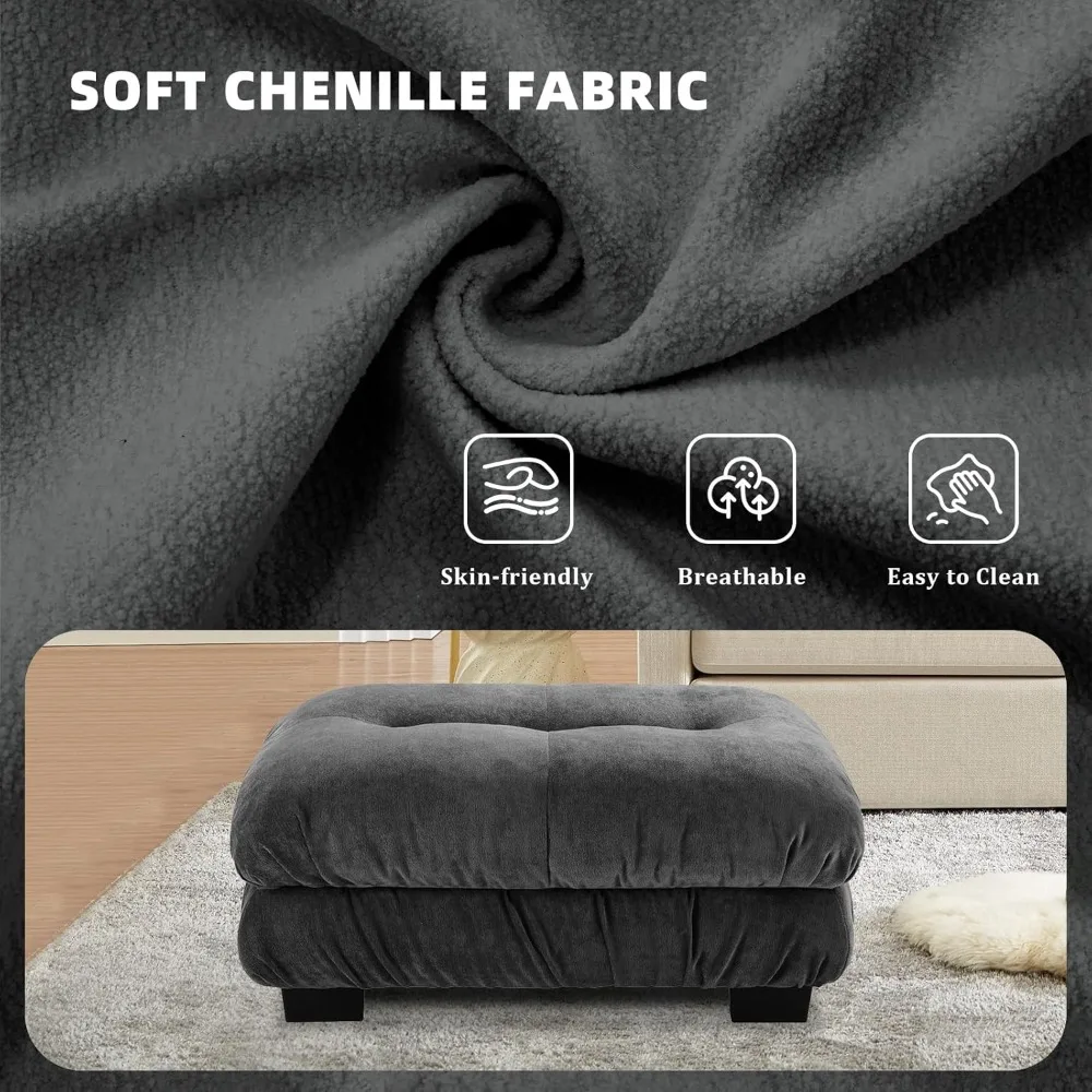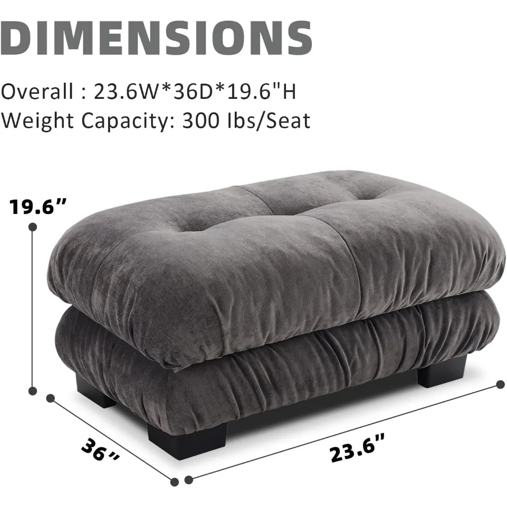 - 【Soft Chenille Ottoman】: This new upgraded Ottoman comes with extra large size. Thickened cushions give you the most comfortable experience.. The single seat is 36 inches wide and 23 inches deep.