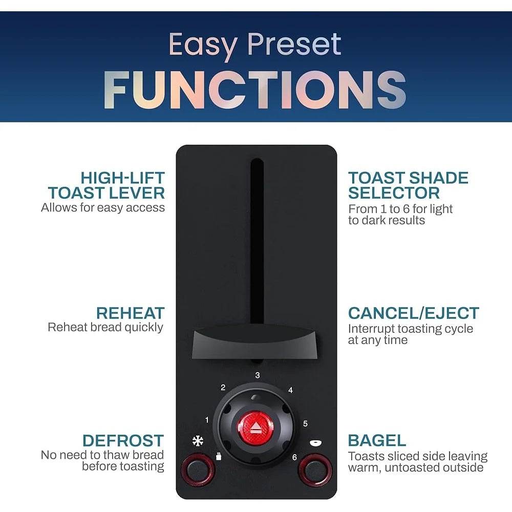 Choose the Extra Wide 2 Slice Toaster with 1.25 Inch Slots and enjoy breakfast perfection every day with unmatched style and precision.