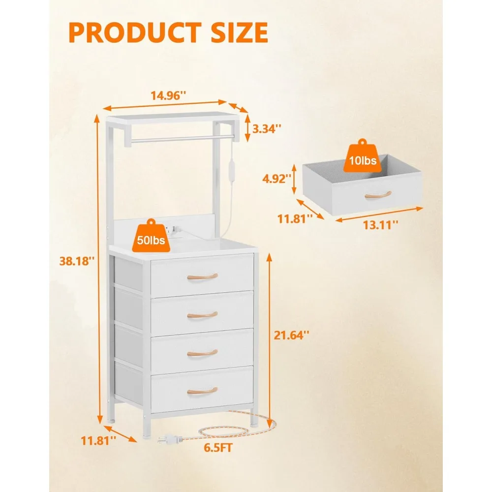 - 【Nightstand with Charging Station】 The tall nightstand comes with 2 standard sockets and 2 USB ports, and 6.5 FT long power cord makes it easy to charge your phone, lamp, and Bluetooth headsets. Make your life and work more convenient.