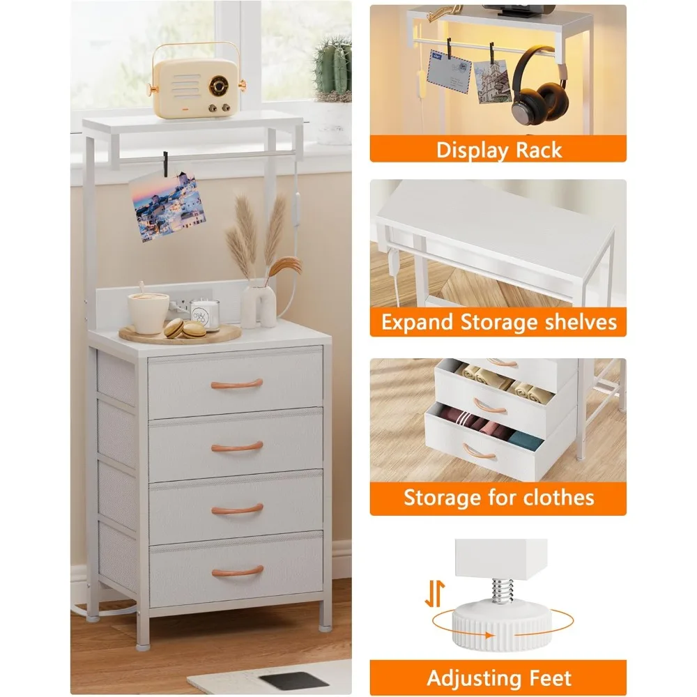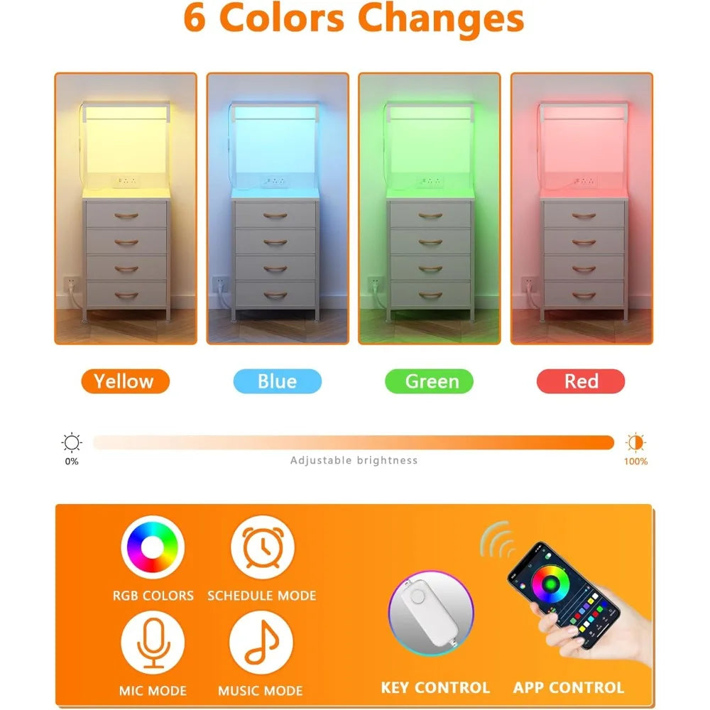 - 【4 Drawers Night Stand with LED Lights】 6 RGB LED colors, adjustable brightness, three modes, push-button control or cell phone control, whether it's warm lighting or fashionable colors, you can adjust it to make your life more colorful and vibrant.