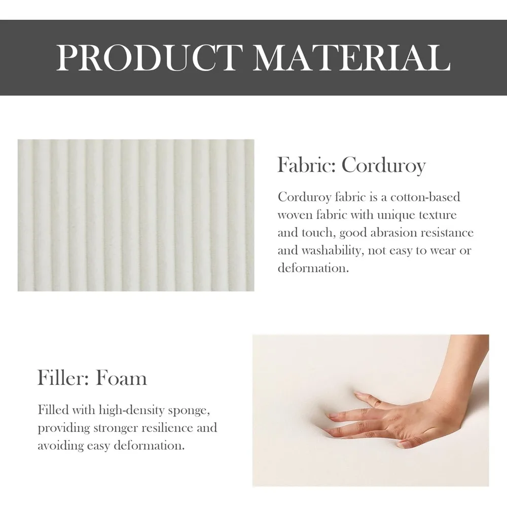This ottoman offers a practical storage solution with its lid that opens to reveal a spacious storage compartment, perfect for keeping clutter organized and enhancing your room's appearance. Crafted with luxurious corduroy fabric, it features velvet strips that are both durable and thick, providing a comfortable and soft touch that is also breathable and moisture-absorbent. The cushion inside is filled with high-density foam, ensuring excellent elasticity and long-lasting comfort without sagging. The sturdy metal legs of the ottoman provide a solid and stable base, capable of supporting up to 113 kg or 250 lbs. Measuring 32.7 inches in length, 18.9 inches in width, and 17.3 inches in height, this storage ottoman is an ideal addition to any seating arrangement. It can be used alongside chairs or sofas, providing a comfortable place to rest your feet and adding a touch of relaxation to your space. We are dedicated to delivering comfortable, stylish products and exceptional service to our customers, and we are committed to providing satisfactory solutions for any quality issues or damaged parts.