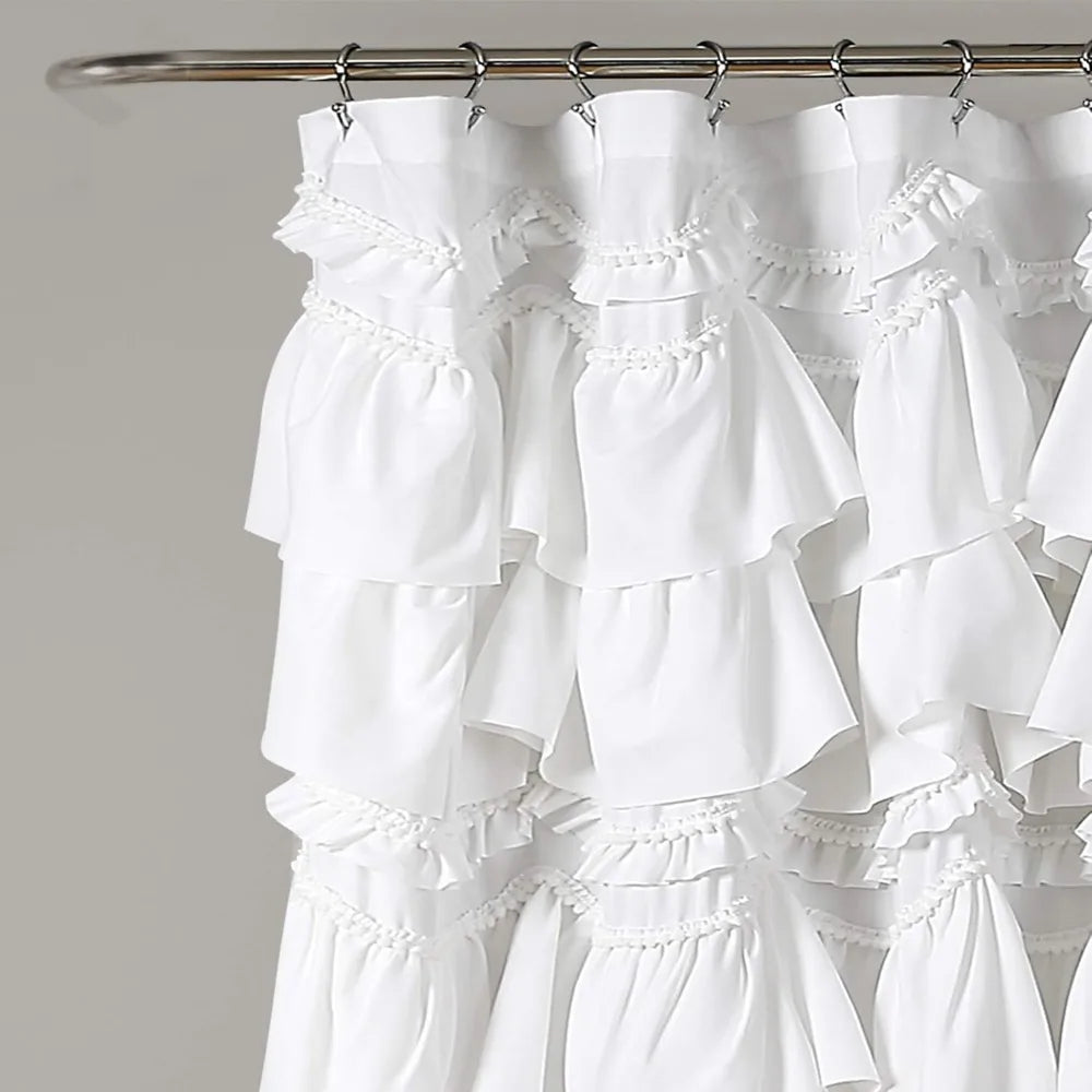 Experience the perfect blend of whimsy and sophistication with the Kemmy Ruffled shower curtain—a premium choice to enhance your bathroom decor with understated luxury.