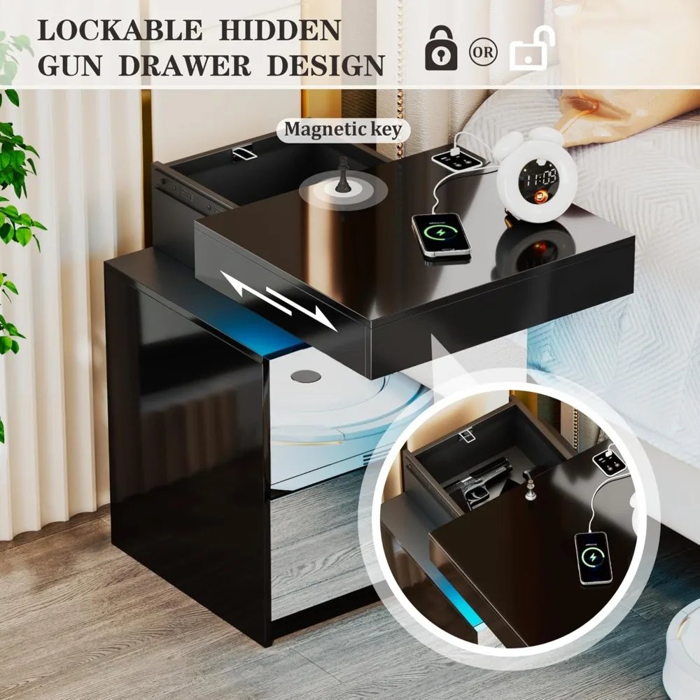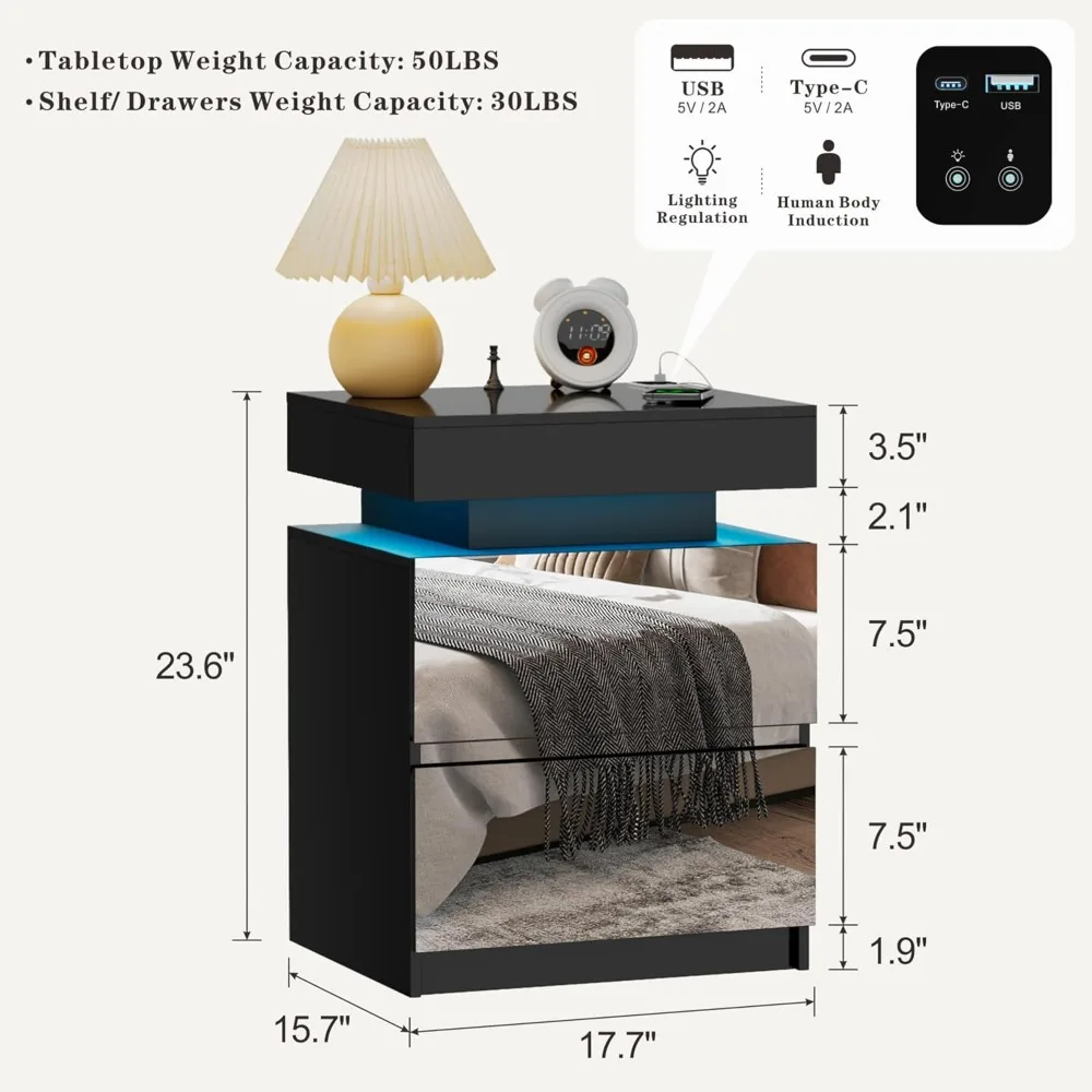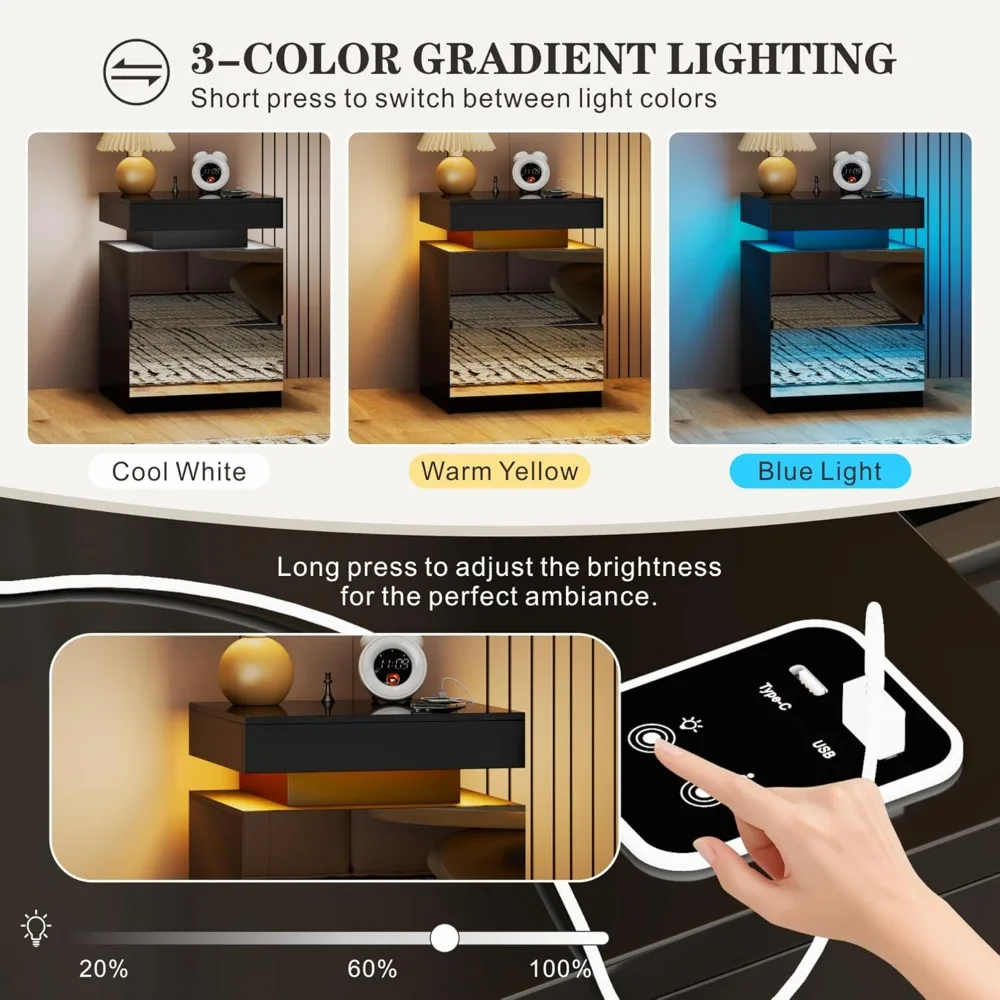 - 【Nightstand with LED Lights】 3 colors LED lights with adjustable intensity, Equipped with an intelligent sensing device, When you approach, it lights up in the dark, Then turning it off won't affect your rest