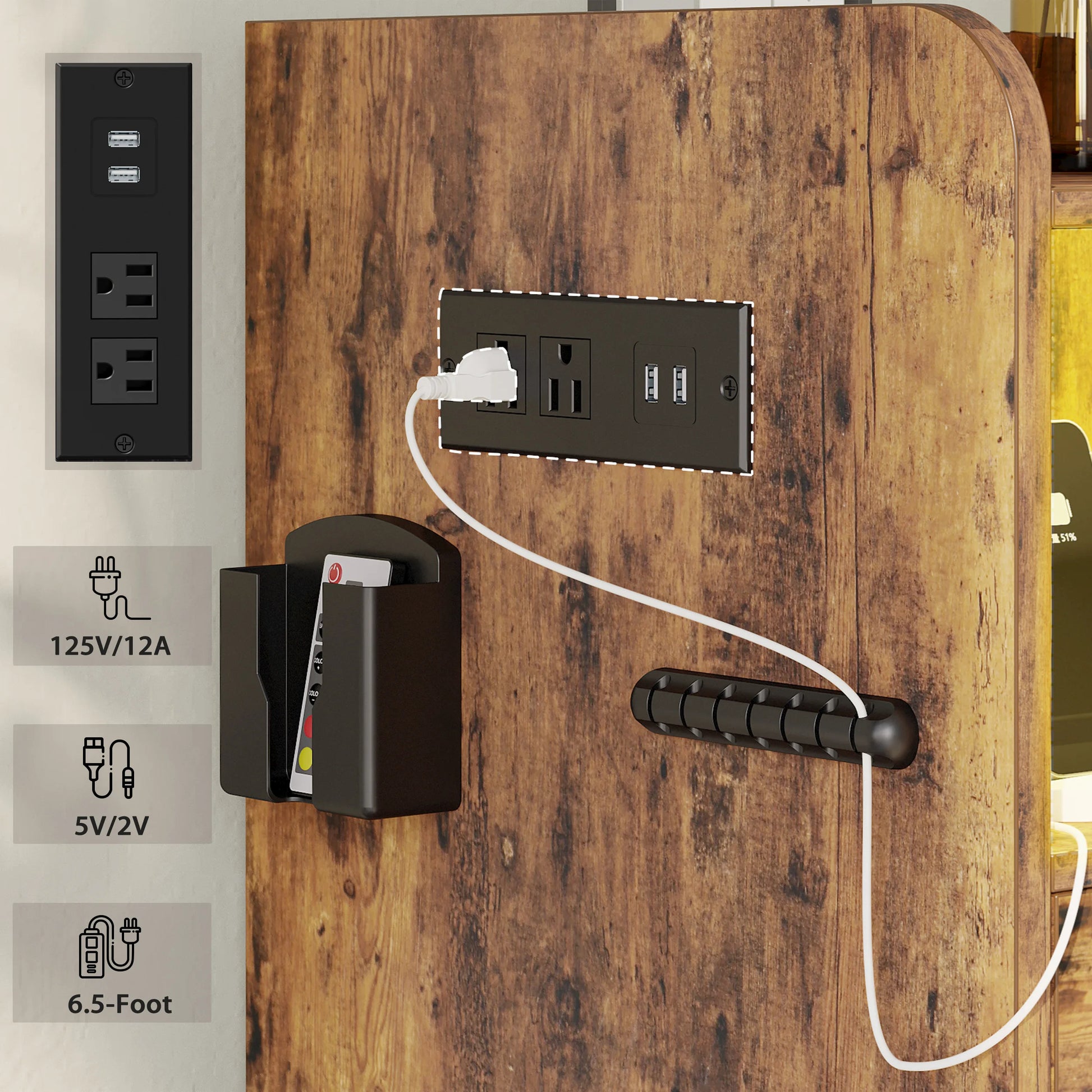 【Nightstand with Charging Station】2 USBs and 2 regular plugins and a cable organizer keeps you charged and organized.