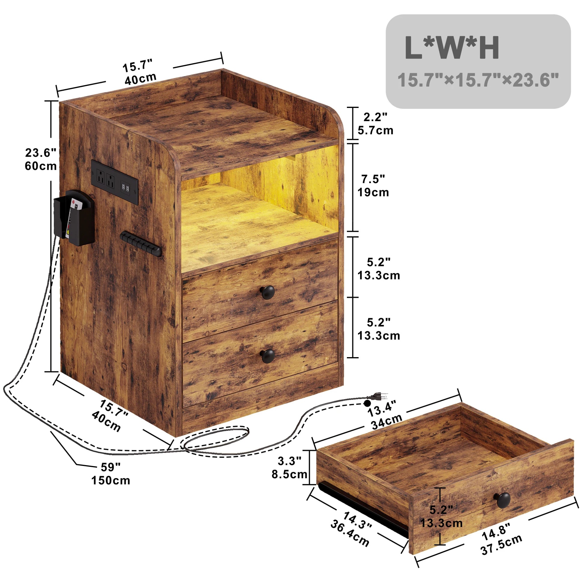 【Easy assembly】Each part of the rustic nightstand is clearly labeled and numbered on each and you just need to match those numbers in order to assemble.Size: 15.7"D x 15.7"W x 23.6"H