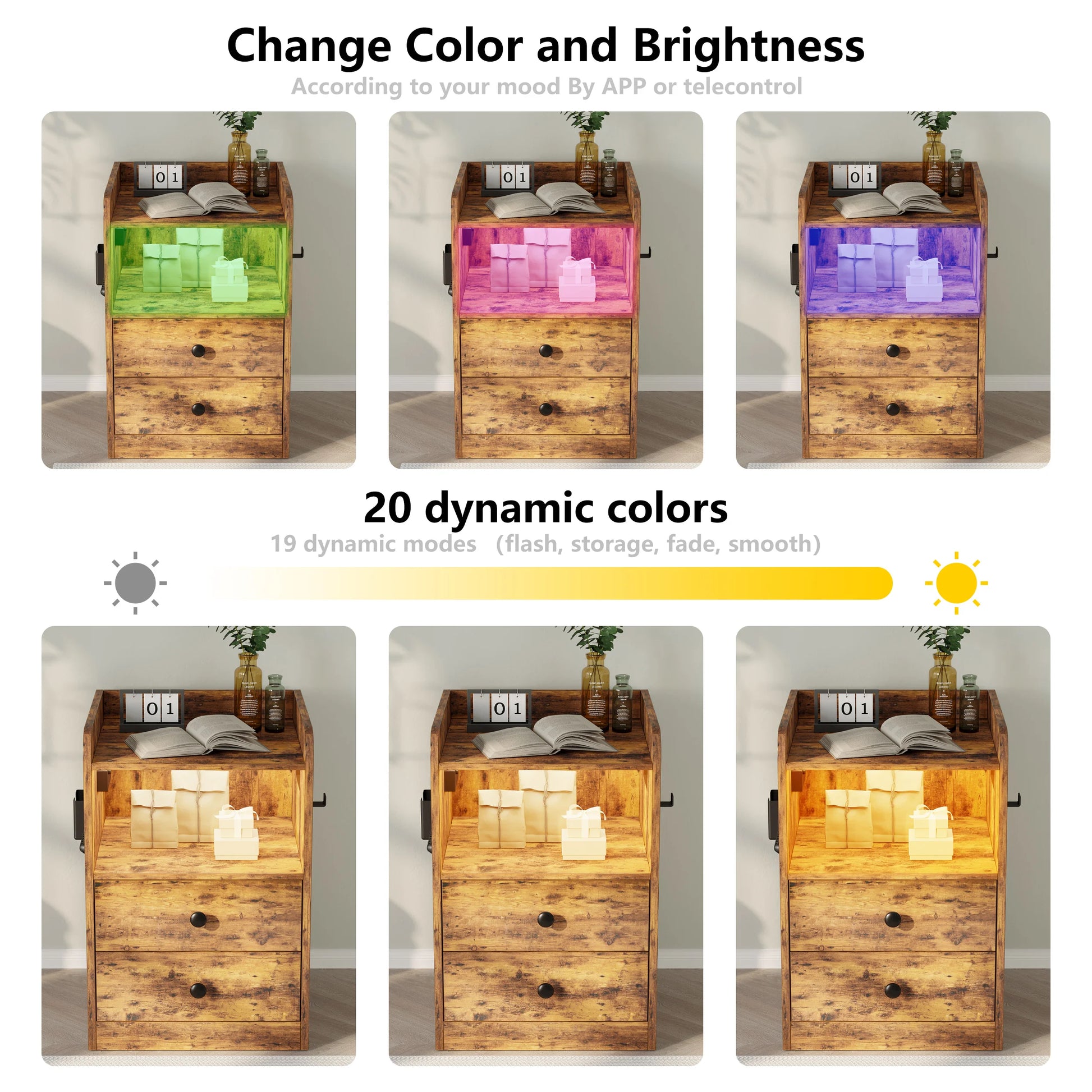 【Nightstand with LED Light】This is great if your like me and hate turning on your overhead light just to look for something at night but still need some light. The lights are great for every kind of mood. The remote control is your special tool to light it up with 7 different colors and also to adjust the light level brightness.
