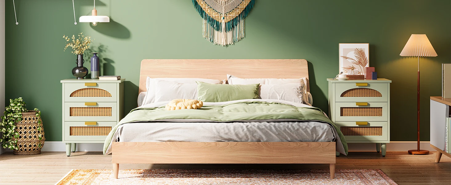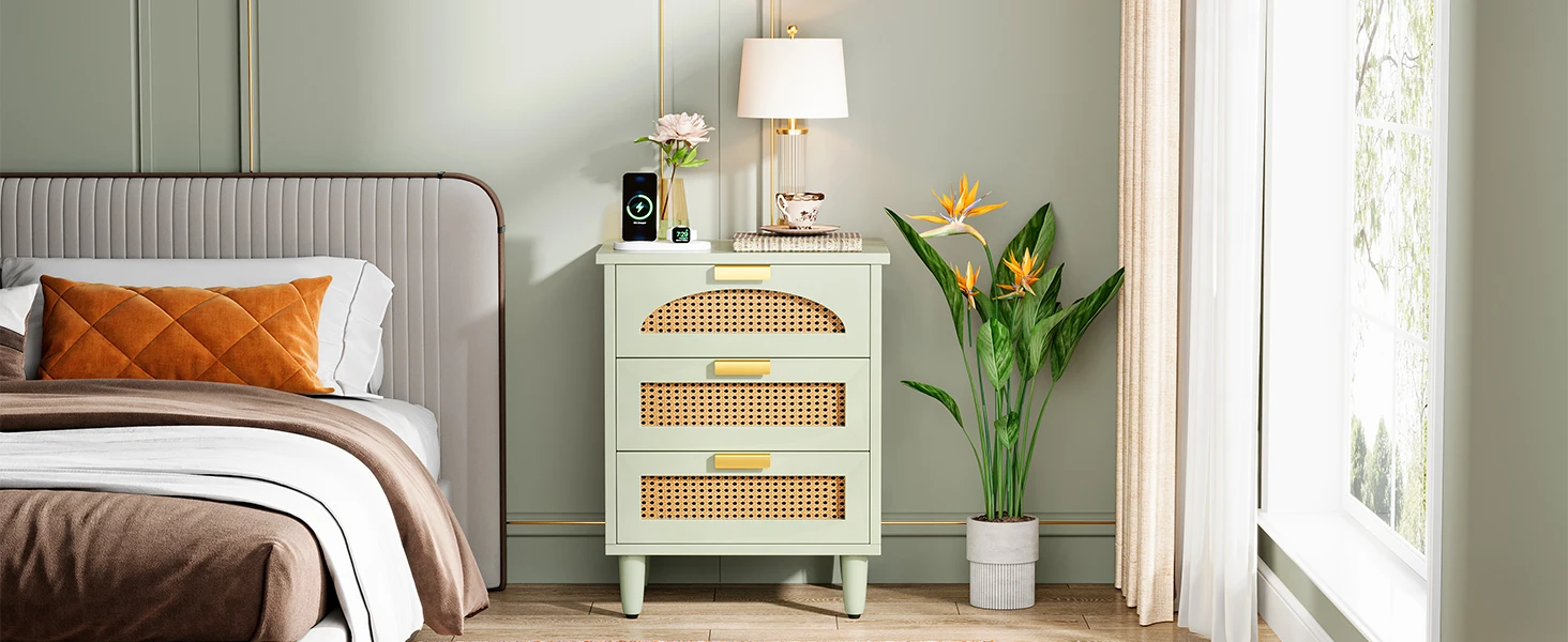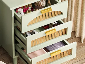 The natural rattan weave on the drawers both keeps the air flowing and adds a touch of rustic elegance and texture.