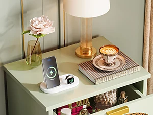 The tabletop provides ample space for a lamp, mobile phone, alarm clock.