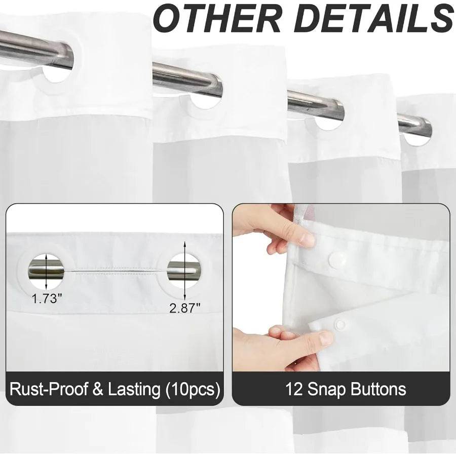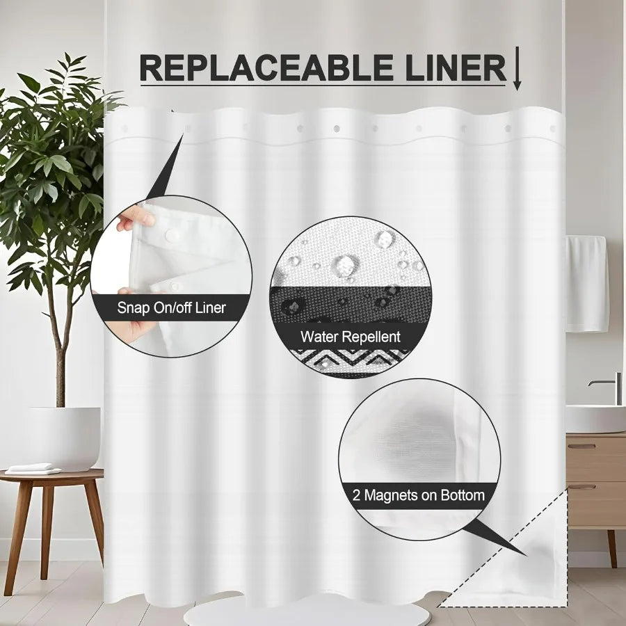 Premium Polyester Fabric: Our fabric shower curtains and liners are made of polyester material, which is durable and maintains the sophisticated look of your bathroom