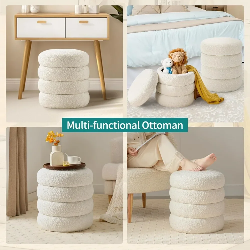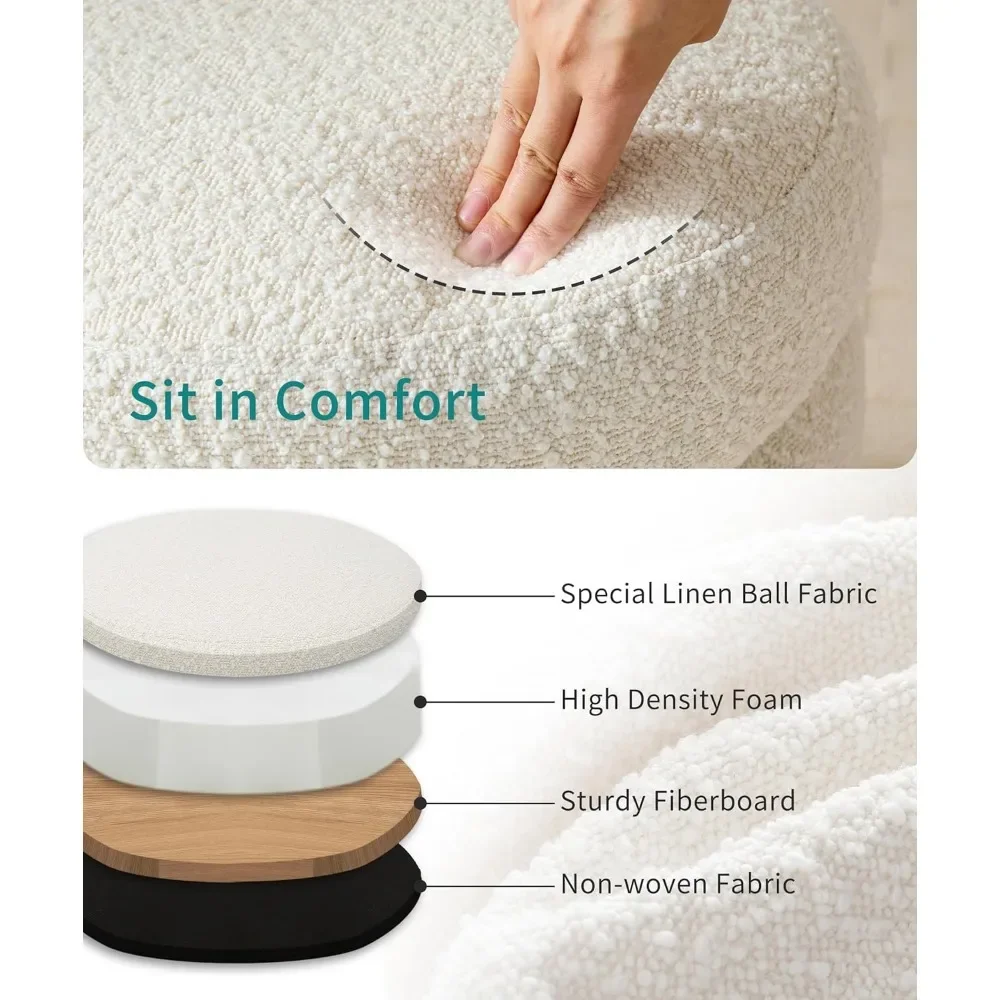 - Multifunctional Round Ottoman: This stylish and elegant round ottoman features a circular design, making it perfect for the bedroom, living room, makeup stool, or entryway. Whether used as extra seating, a small coffee table, or a footrest, this ottoman seamlessly blends into various home environments to meet your diverse needs.
