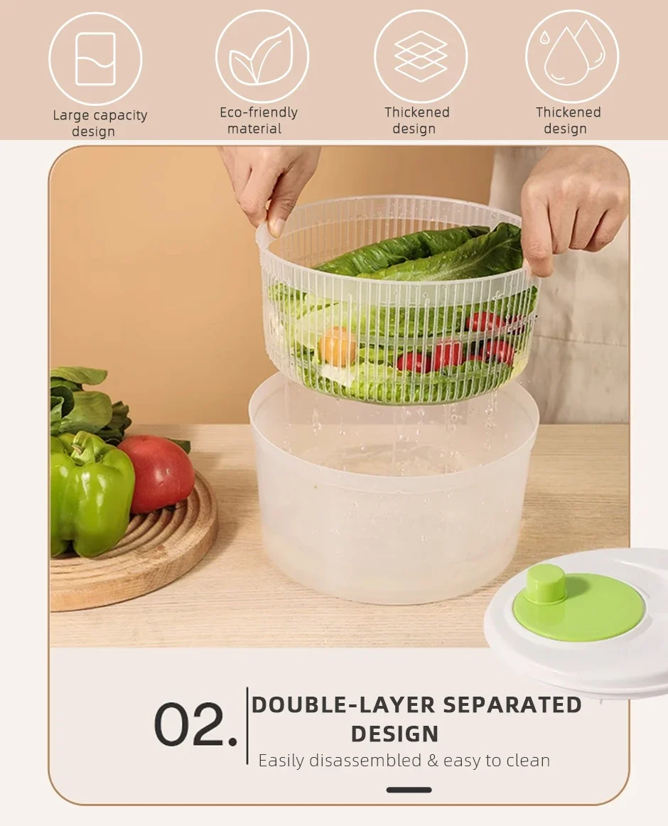 1 .Spin-dry your lettuce, herbs, greens, pasta or fruit easily & quickly with this 4 Quart capacity salad spinner.