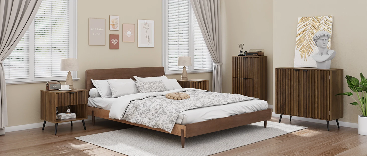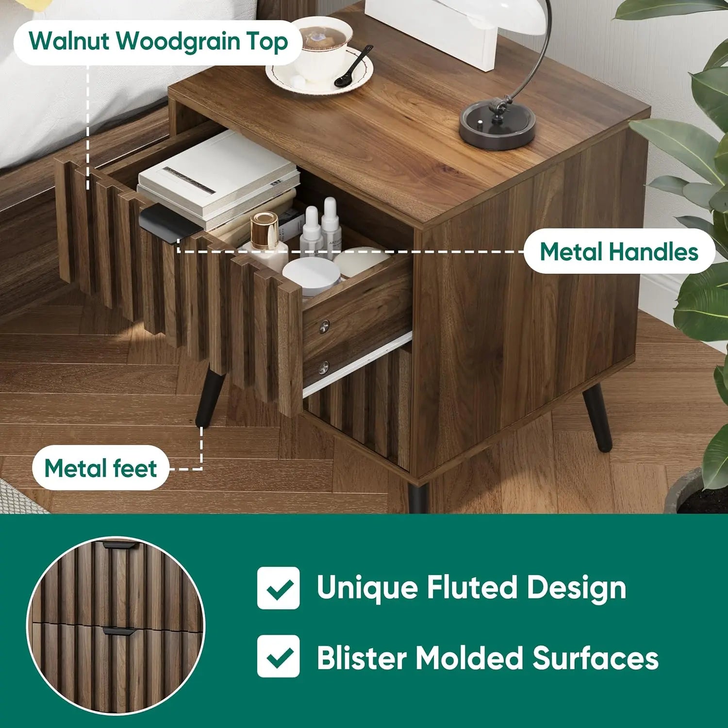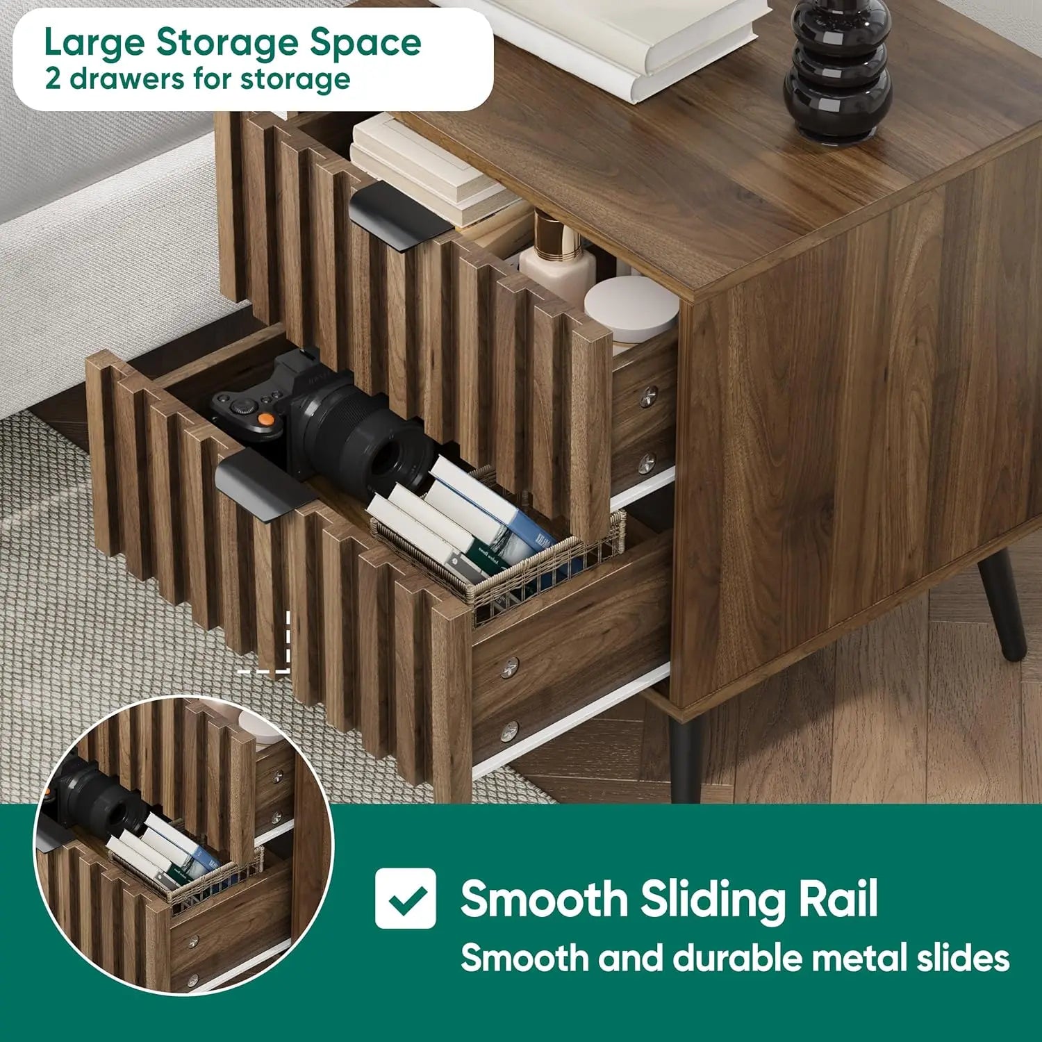 3. 【Large Storage Space】Designed to fulfill your storage needs, this fluted nightstand features 2 convenient drawers, It offers versatile storage options that are both conveniently concealed and easily accessible, ensuring a hassle-less and organized living space.